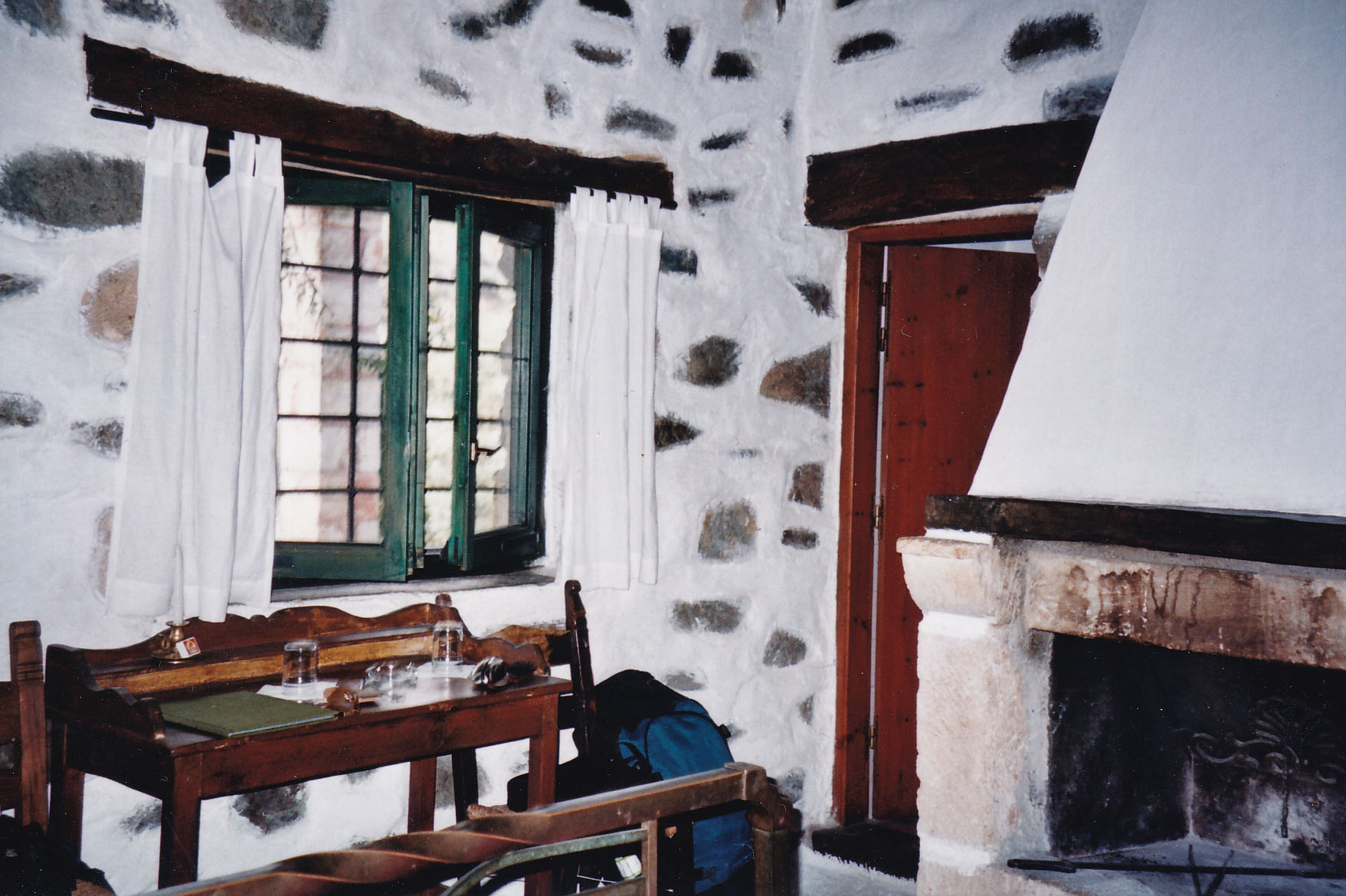 The hotel started life as a Dominican Monastery in the 15th century. It was renovated by the great Venetian architect, Michele Sanmicheli, who constructed the fortress of Rethymno. Under the Ottomans, it was taken over by Bey Risvan for his widowed sister. At the beginning of the 20th century, it was given by the Greek Government to the Prokopakis family as acknowledgement for Emmanuel G. Prokopakis’s contribution to aiding the Greeks against the Macedonian Rebellion (1903-1908). It was here in 2005 that I met Kyria Maria, Emmanuel’s granddaughter, who ran the hotel with her son. As soon as I arrived, she gave me a tour and told me about its history, proudly showing me the photograph of her grandfather which takes pride of place in on one of the rooms. The family endeavored to keep the integrity of the hotel: the small hammam is now a wine cellar, the courtyard with its Venetian fountain is where breakfast is served, and most of the rooms still maintain the vaulted roofs with old embroidery artifacts adorning the walls.